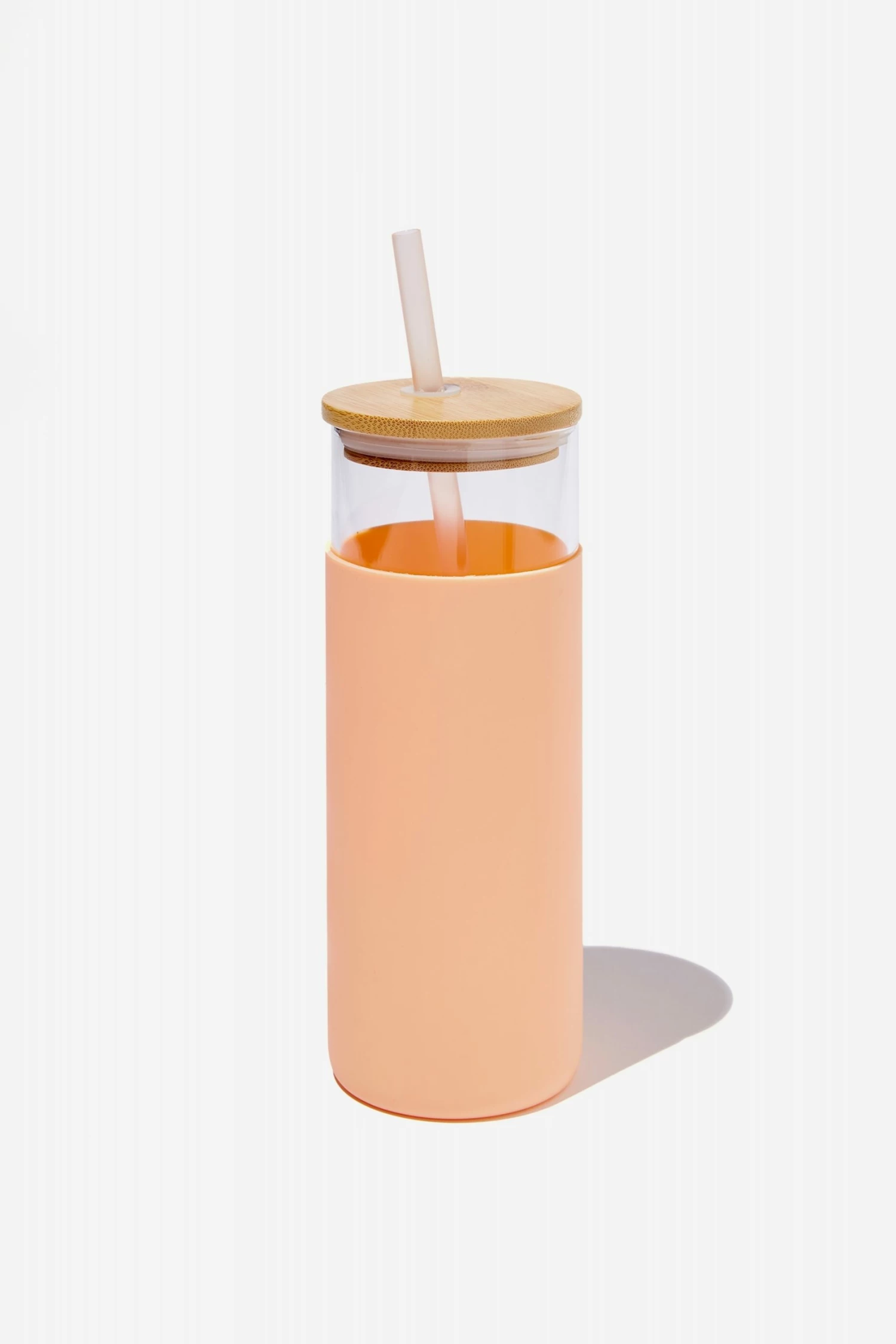 - Glass smoothie cup with straw